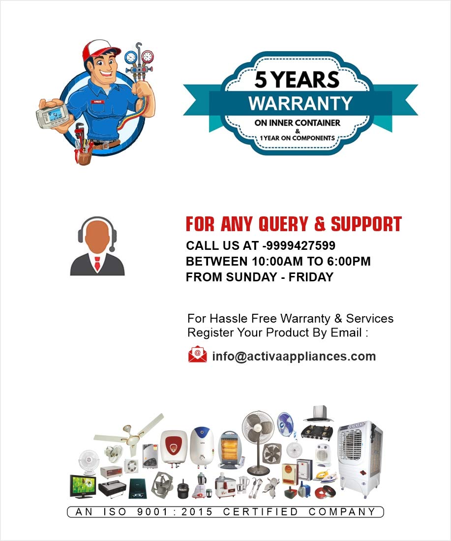 - Quality Check And Warranty : 5 safety function and 15 Quality check by team of professionals to ensure best storage & Instant water heaters for you. 5 year warranty on inner tank and 1 year on all parts.