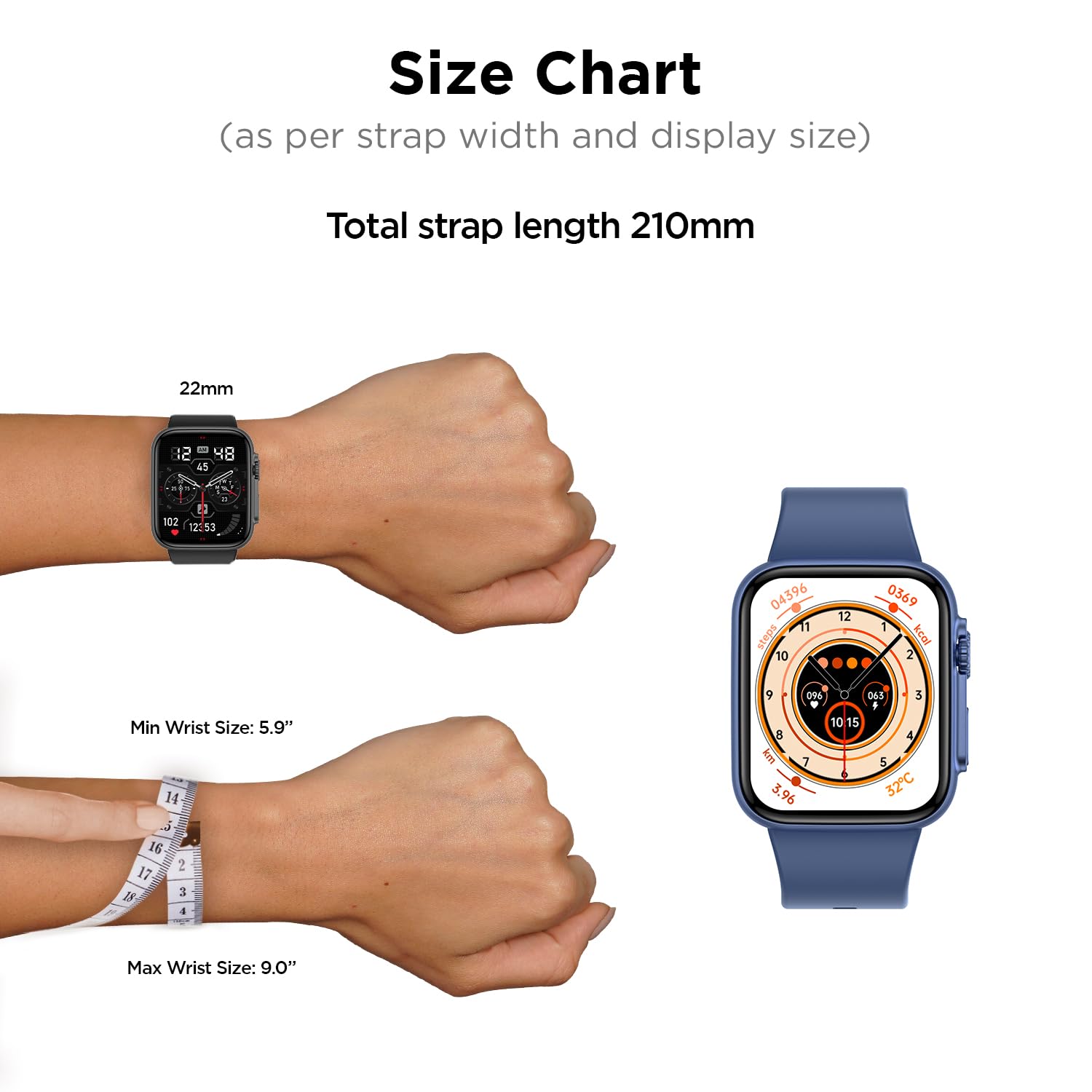 - Largest 1.96″ Display: View bigger on the screen with the industry’s largest 1.96″ display covering every edge possible and providing a crystal-clear resolution of 240*282 pixels. 500 Nits Peak Brightness.